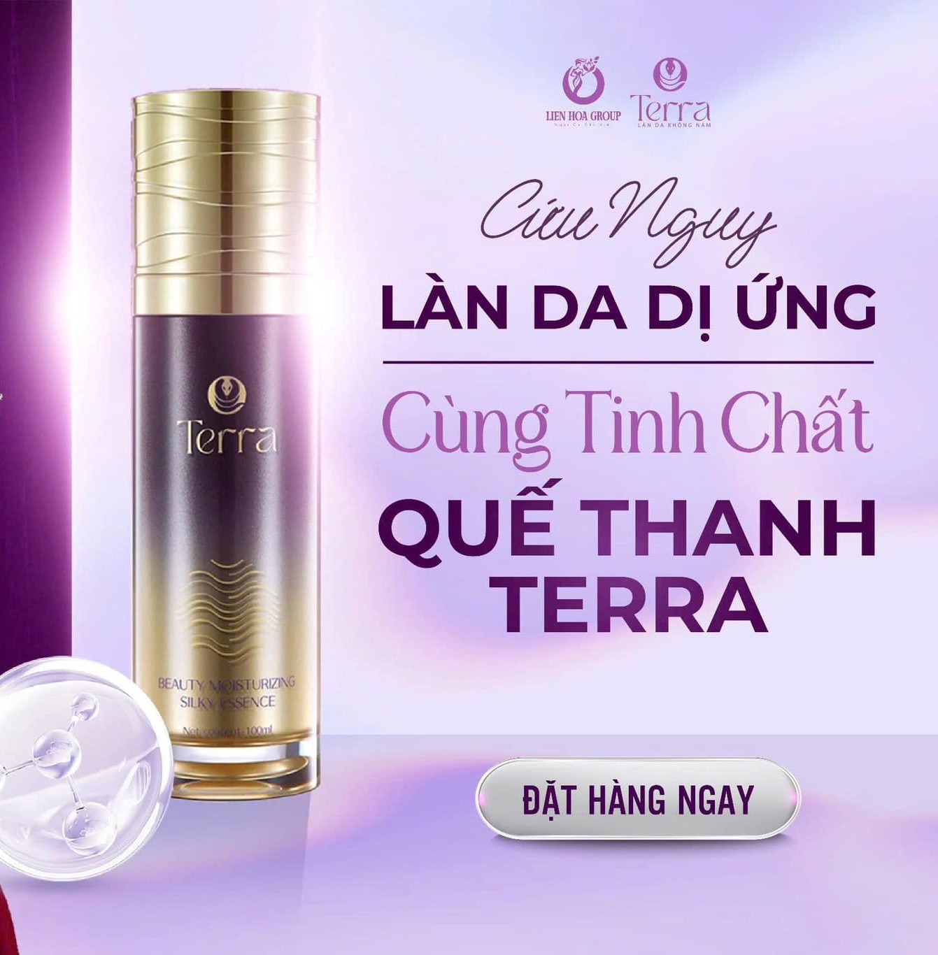 Tinh chất chống dị ứng Quế Thanh Terra ra đời, được sàn lọc cùng với sự kết hợp của hơn 30 hoạt chất mang đến giải pháp hữu hiệu cho tất cả các loại da, đặc biệt là da dễ bị kích ứng, dị ứng và da đang điều trị. Không chỉ làm dịu da ngay lập tức mà còn sở hữu nhiều công dụng vượt trội: