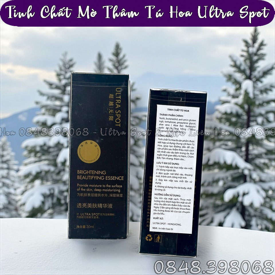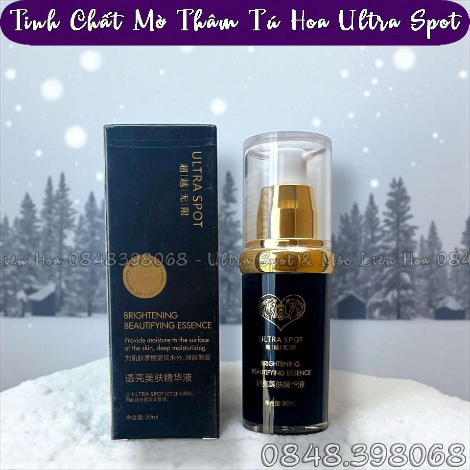 TINH CHẤT TÚ HOA ULTRA SPOT Brightening Beautifying Essence - Thể tích sản phẩm: 30ml - Sản phẩm thuộc hệ thống Mộc Liên Hoa & Ultra Spot - Mã vạch sản phẩm: 4897111392027 4897136432302 - Giá lẻ: 1.100.000 đồng/Chai
