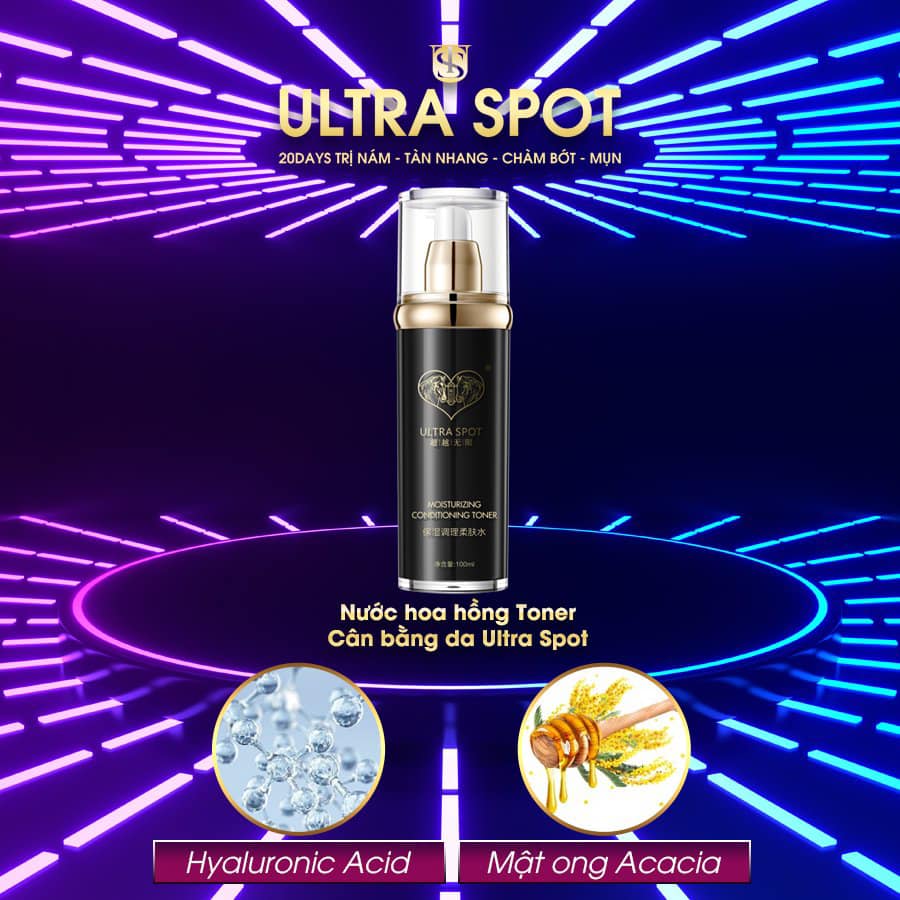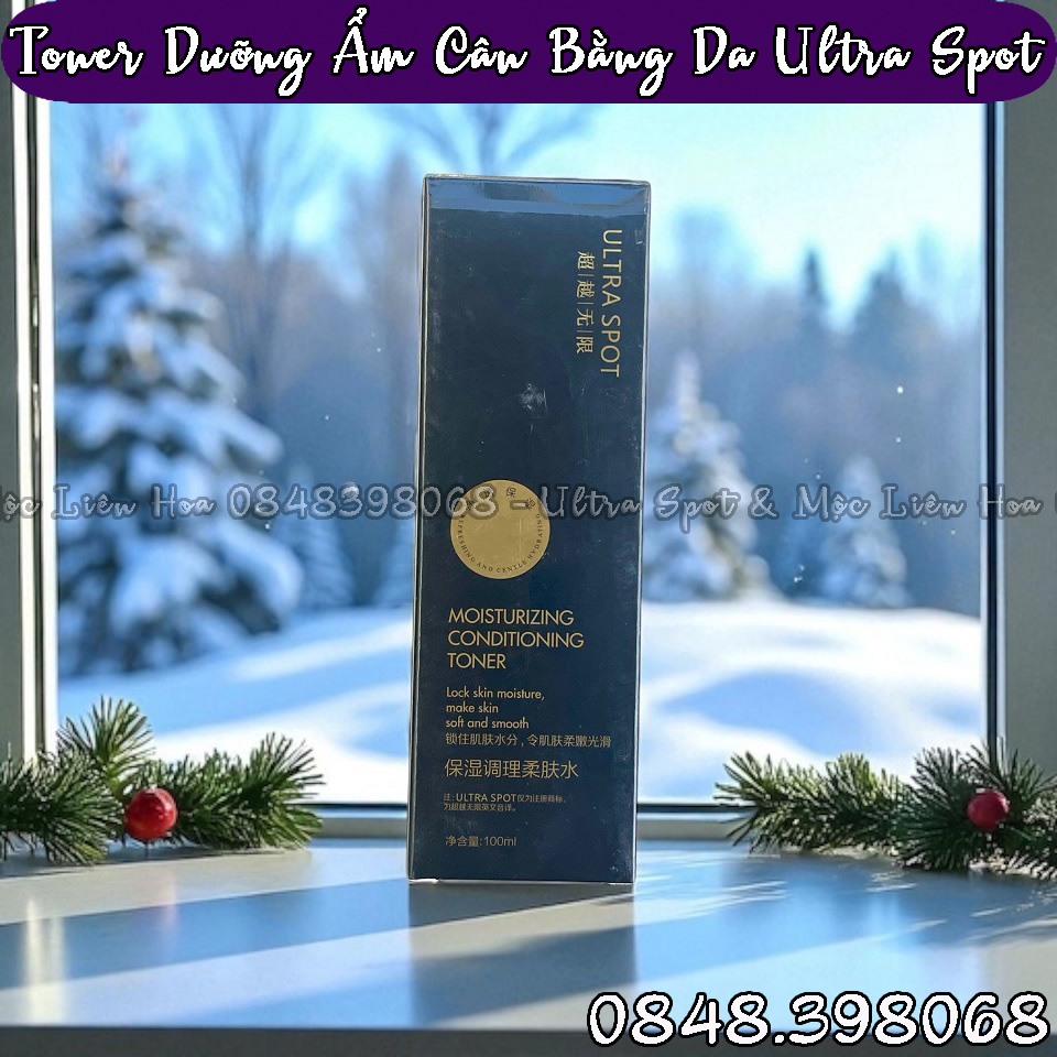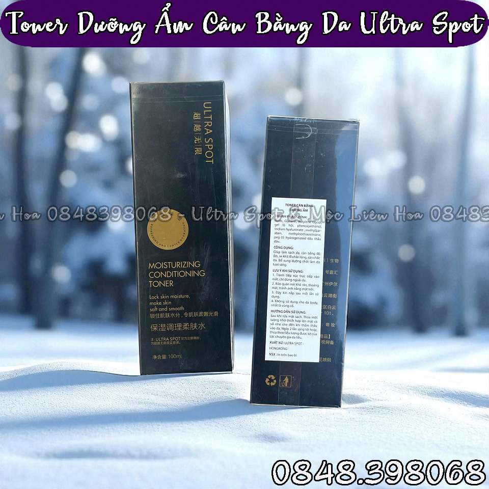 TONER DƯỠNG ẨM CÂN BẰNG DA ULTRA SPOT Moisturizing Conditioning Toner - Thể tích: 100ml - Sản phẩm của hệ thống Mộc Liên Hoa & Ultra Spot - Ma vạch: 4897111391723 Giá lẻ: 1.200.000 đồng/Hộp